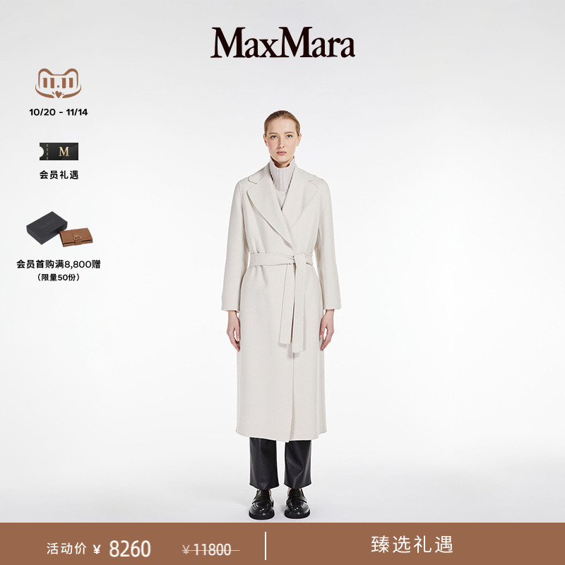 MaxMara?女装Poldo双面绵羊毛系带大衣