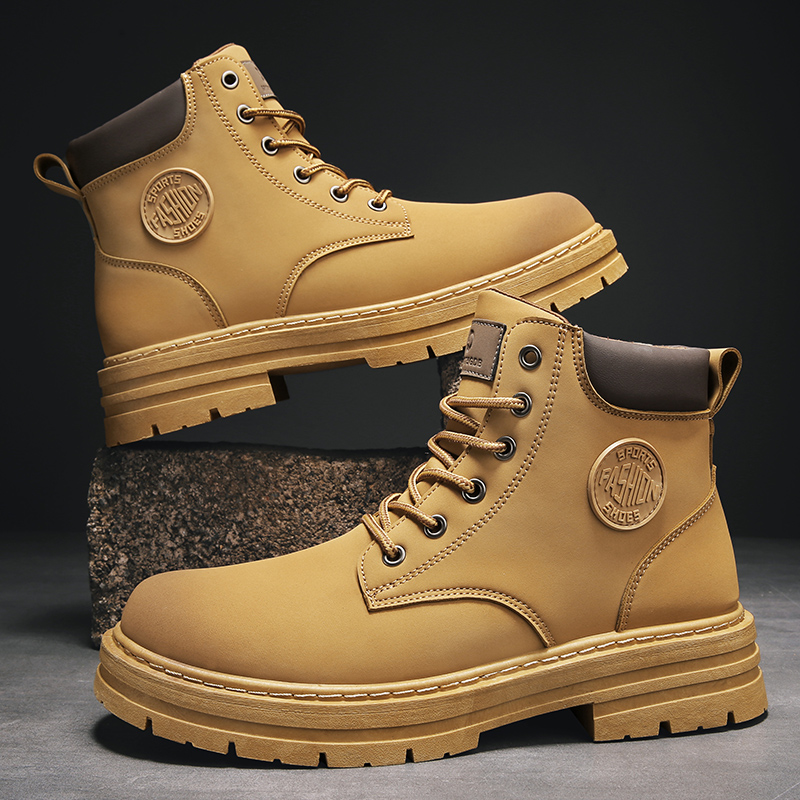 高帮皮靴男士中帮厚底工装短靴加厚棉鞋