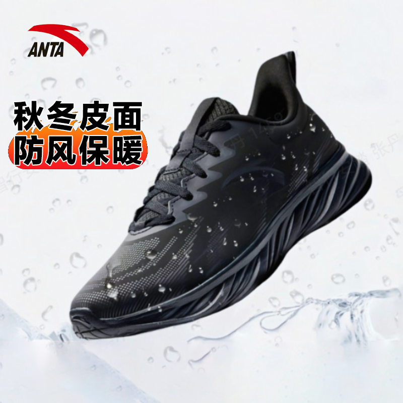 安踏男鞋皮面防水运动鞋