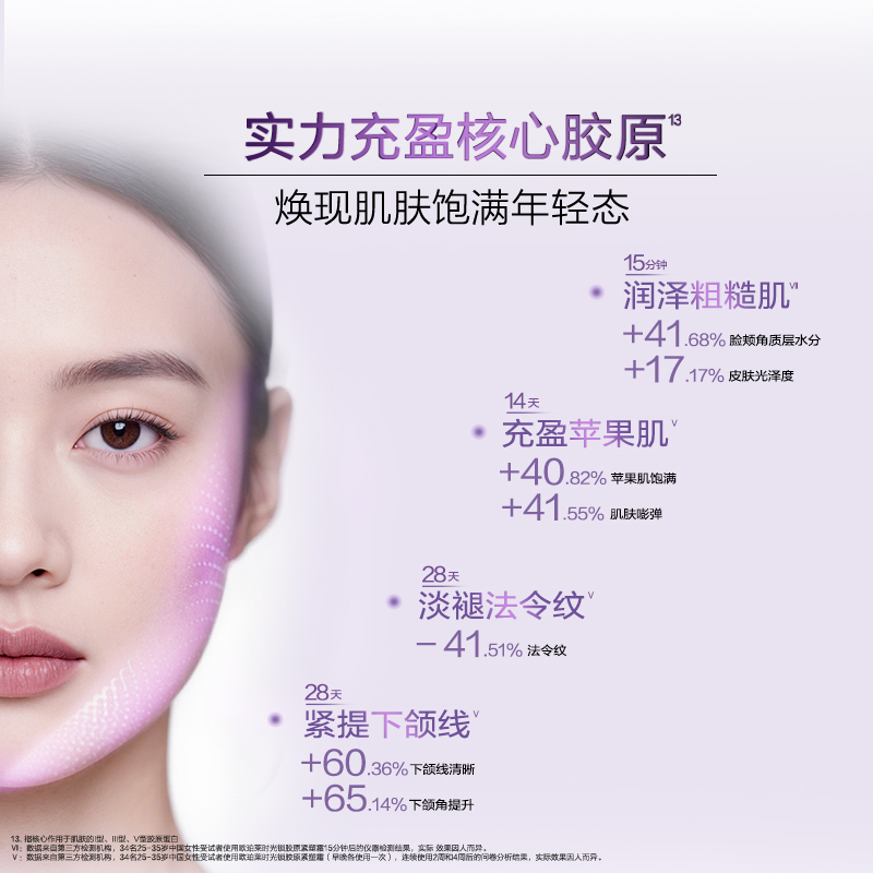 | 效果 | 4周轮廓紧致度提升23%* | 8周细纹淡化15%* |