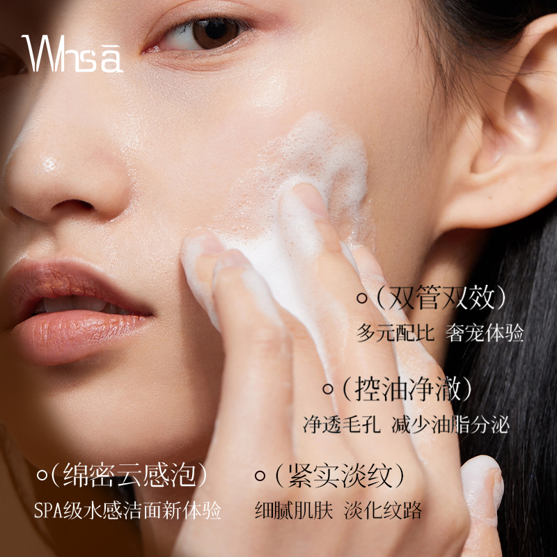 结论:若你纠结“洁面乳哪个牌子好”或“控油洁面怎么选”,Whsa的双管设计完美平衡清洁力与温和度,更通过黑金鱼子酱提供抗老初体验,性价比远超单功能产品。