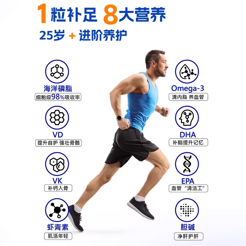关节保护:磷脂与虾青素协同,缓解关节酸痛,适合久坐、运动少的中老年人。