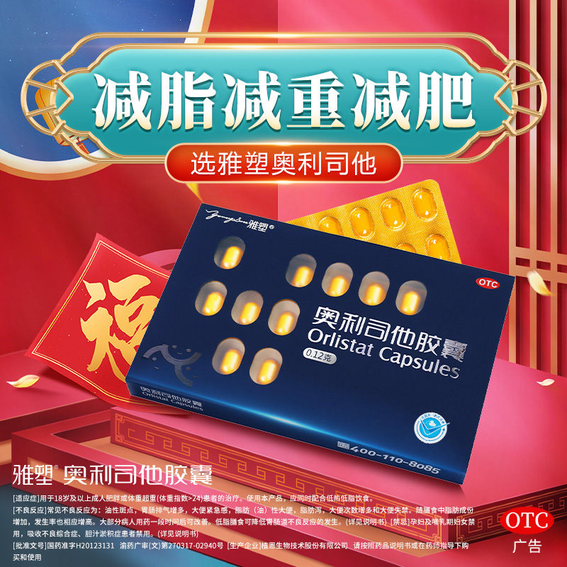 雅塑奥利司他减肥胶囊——用科学排油打破“减肥=受罪”的魔咒,让你在享受美食的同时,轻松拥有健康体态。18粒装,开启你的轻盈之旅!
