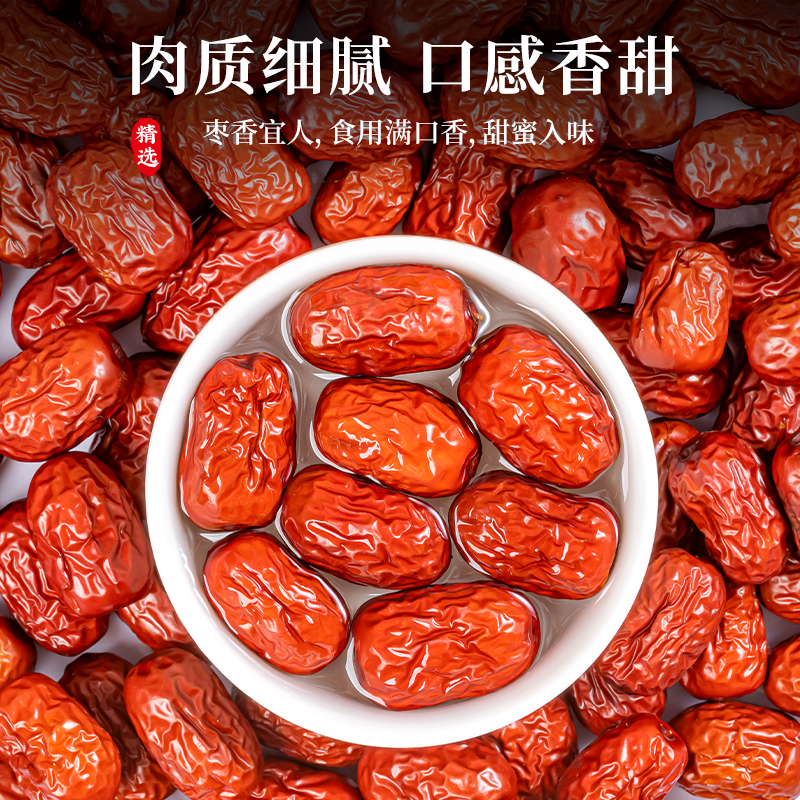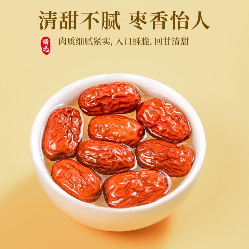 • 尝味道:自然甜香无酸涩味,避免选择过甜或发苦的红枣。