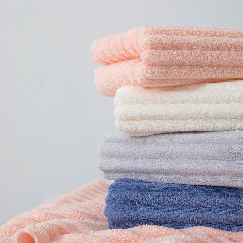 这款成人全家用大毛巾,精选优质珊瑚绒面料,通过精梳工艺织造而成。珊瑚绒纤维细密柔软,触感如云朵般轻盈,每一寸肌肤都能感受到被温柔包裹的舒适感。精梳工艺有效去除了短纤维和杂质,使得毛巾更加耐用,不易起球掉毛,即使经过多次洗涤,依然能保持如新的柔软与蓬松。