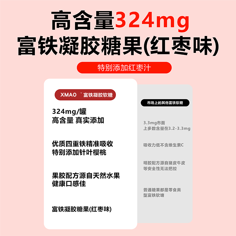 | 对比维度 | XMAO富铁软糖 | 传统铁剂(片剂/液体) |