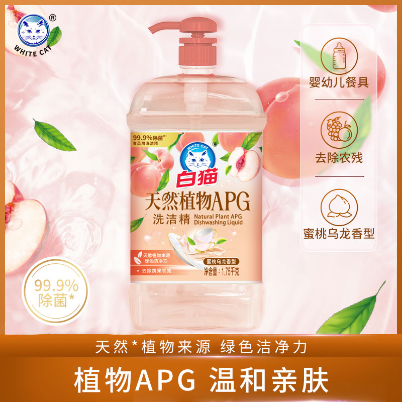 白猫天然植物APG洗洁精500g,以科技赋能天然,让厨房清洁更安心、更高效。一瓶解决餐具与果蔬清洗需求,性价比与品质兼得,是家庭清洁的明智之选!