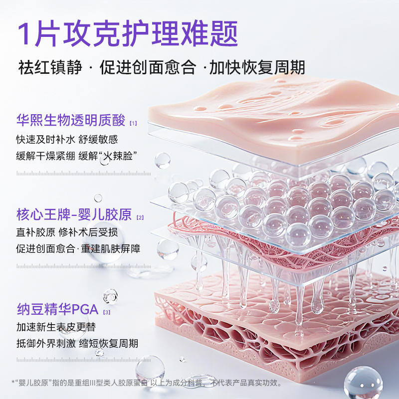 ✅ 加速愈合:重组胶原蛋白模拟人体胶原结构,填补受损屏障,减少结痂期;
