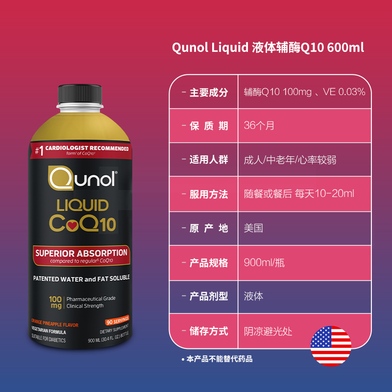 【预售】Qunol酋诺液体辅酶Q10 900ml*2瓶——心脏健康与抗氧化的双重守护