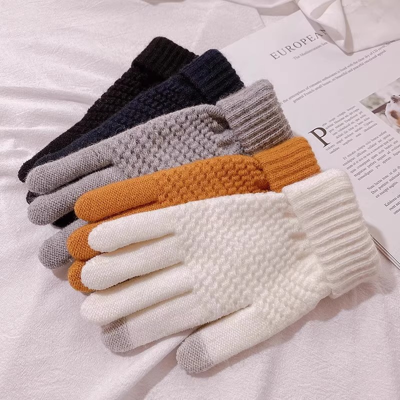 采用高密度针织毛线材质,外层防风抗寒,内里加厚毛绒贴合手掌,形成双重锁温层。指尖特别加入导电纤维,无需脱手套即可操作手机,兼顾实用性与科技感。男女通用设计,弹性腕口贴合手腕,防止冷风灌入,长时间佩戴不紧绷。
