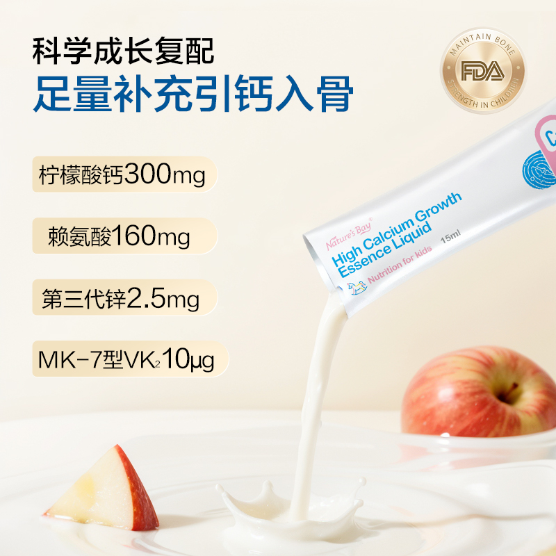 天然博士逆袭钙赖氨酸液体钙专为婴幼儿及儿童设计,采用钙+赖氨酸+维生素K2+锌四重黄金配比,突破传统补钙产品单一成分局限。