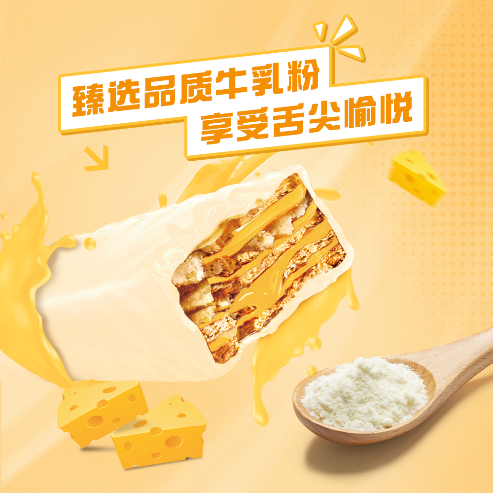 黄金芝士配比:新西兰进口芝士粉融合香浓威化,咸甜交织不腻口,芝士爱好者闭眼入!