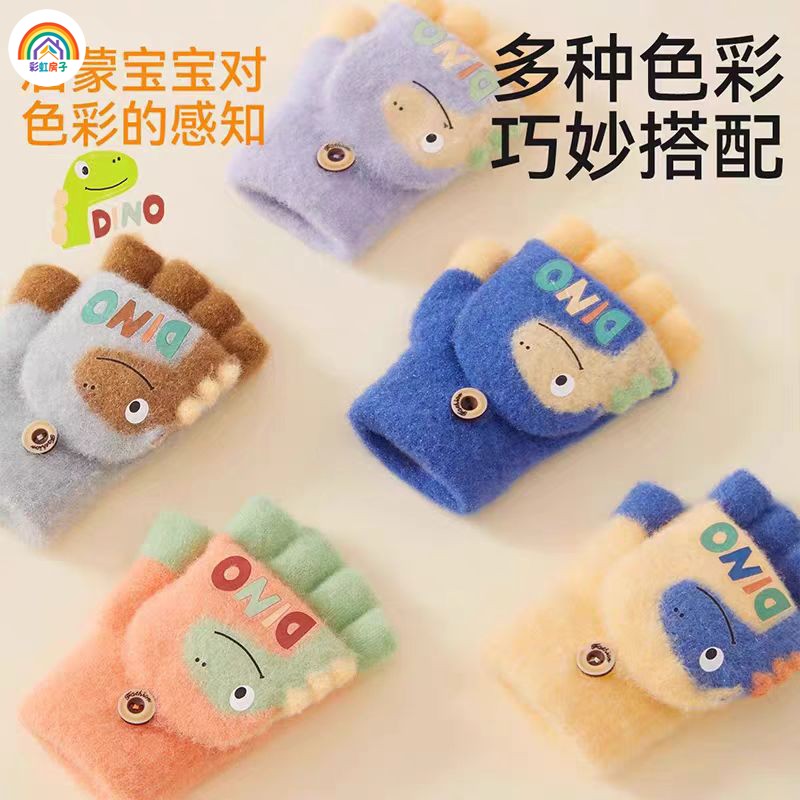 • - 五指分指:灵活活动不束缚,写字、抓握玩具更轻松。 - 螺纹碗口:贴合手腕不漏风,久戴不松垮。 - 卡通造型:萌趣图案(独角兽、小恐龙等)激发孩子佩戴兴趣。