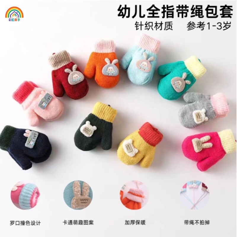 产品详情:彩虹房子儿童保暖针织手套——冬季防寒五指分指宝宝写字手套