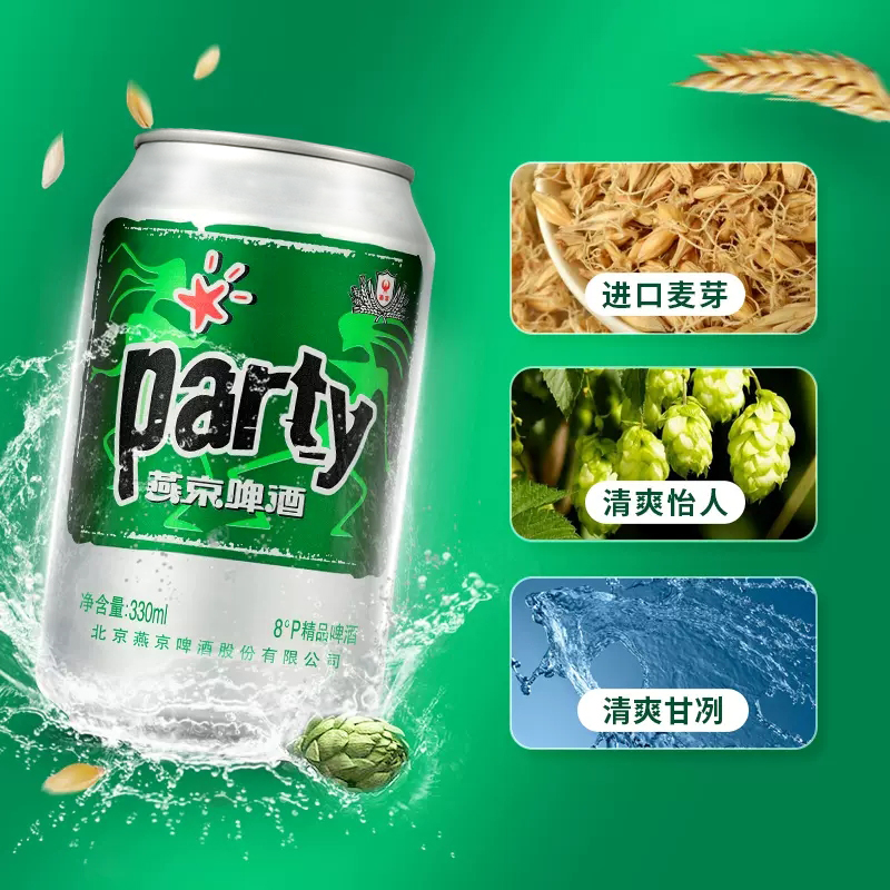 【下单立减114元!叠加红包+88vip到手72.68元3箱!72罐!到手1元/瓶,数量有限,速抢!】燕京party啤酒,即刻畅饮,醇香酒气,清新劲爽,大牌好品质,持久挂杯!冰镇一下,冰爽一触即发!