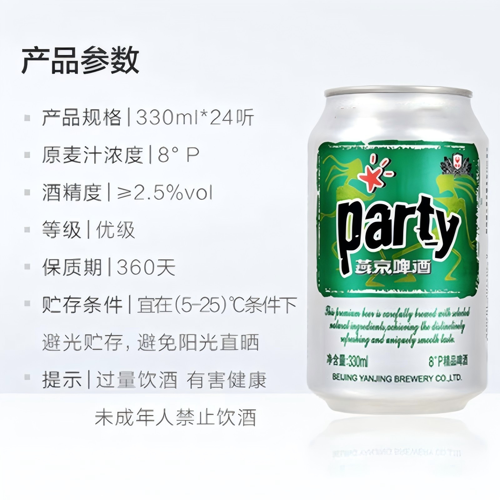 产品详情:燕京啤酒8度party听装黄啤3箱*24罐