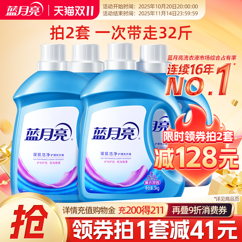 【详情页点淘金币加购!叠加淘金币+88vip折扣+消费券到手58.4(折算3.6一斤)!前5000单到15%】蓝月亮深层洁净洗衣液16斤,温和配方安心洁净,清新花香衣物散发自然清香~