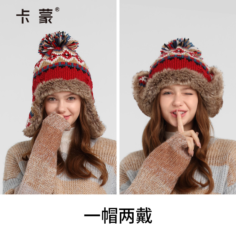 女性 保暖 秋冬场景 防风防寒 红色 加绒加厚材质 毛线材质 护耳 大头围设计