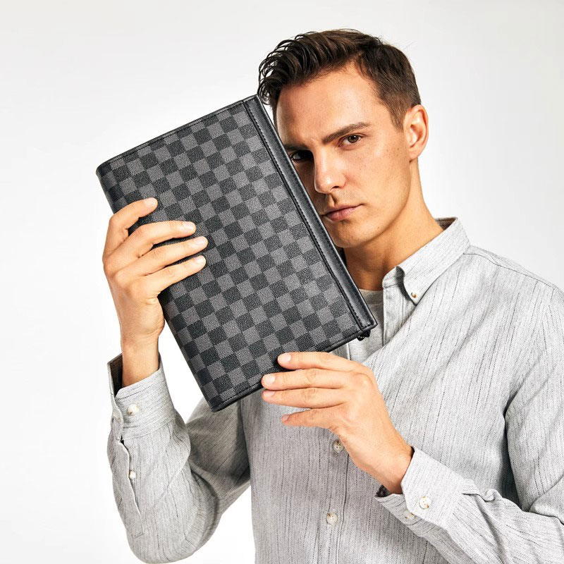 2025新款男士大容量商务格子手夹包:格调与实用并存