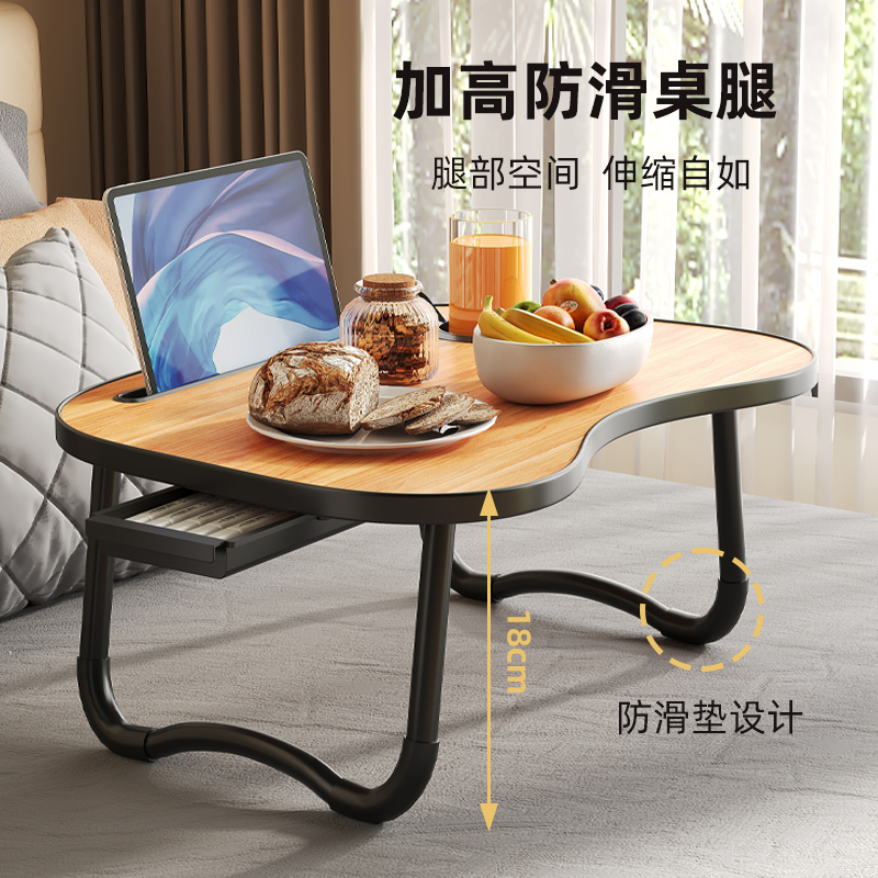 【达亿佳】可折叠床上小桌子带卡槽杯托抽屉