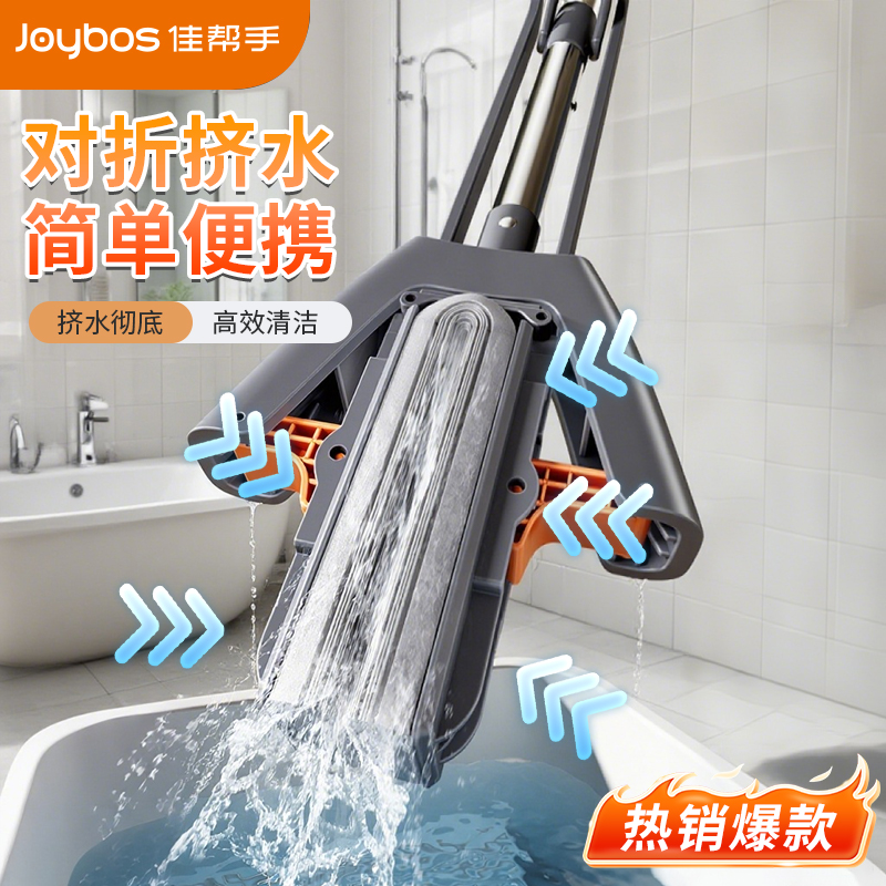 A:选择时重点关注挤水方式(对折挤水更干净)、胶棉头材质(高密度PVA更耐用)、杆身材质(不锈钢更稳固)。佳帮手作为家居清洁知名品牌,品质有保障,谢霆锋代言更添信赖!