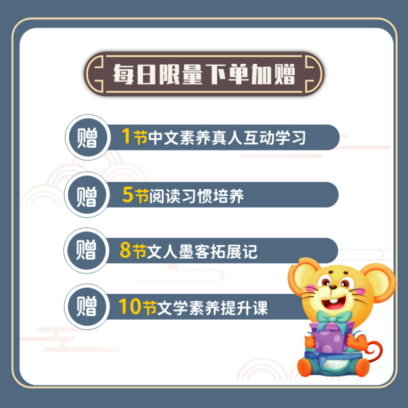 • 现在下单即赠:价值199元的「亲子阅读指导课」+定制拼音转盘教具!让孩子的中文学习从「被动接受」变成「主动探索」,点击下方链接开启智慧成长之旅!
