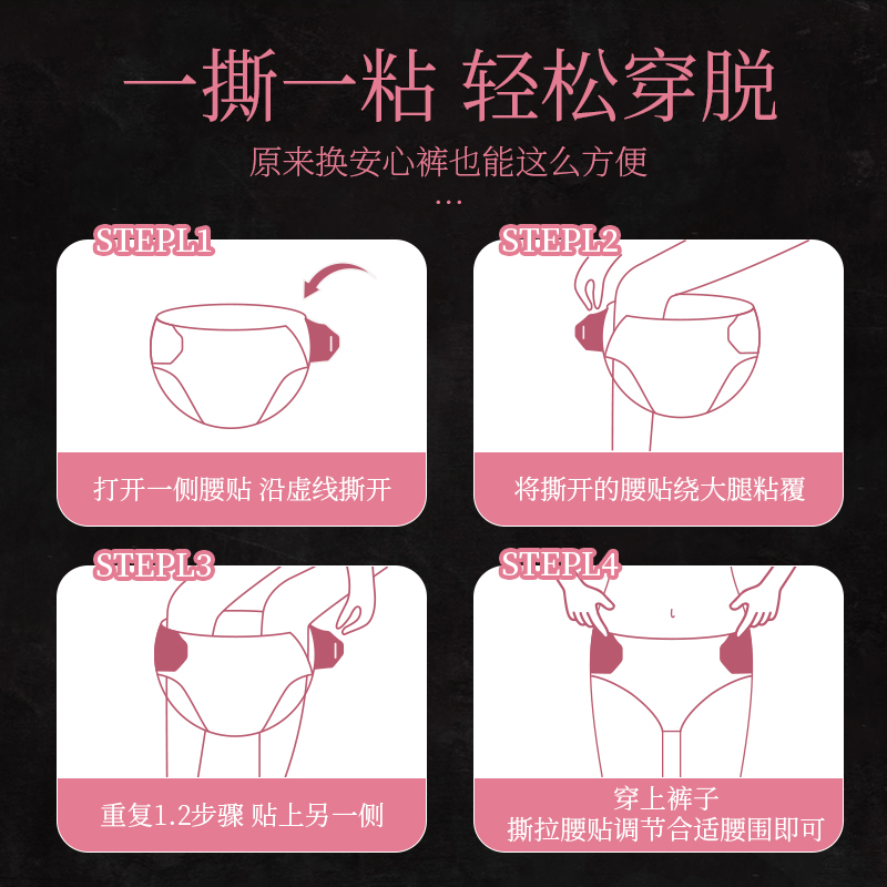 | 穿脱便利性 | 魔术贴调节,无需全脱 | 固定胶带,穿脱费力 | 需搭配内裤使用 |