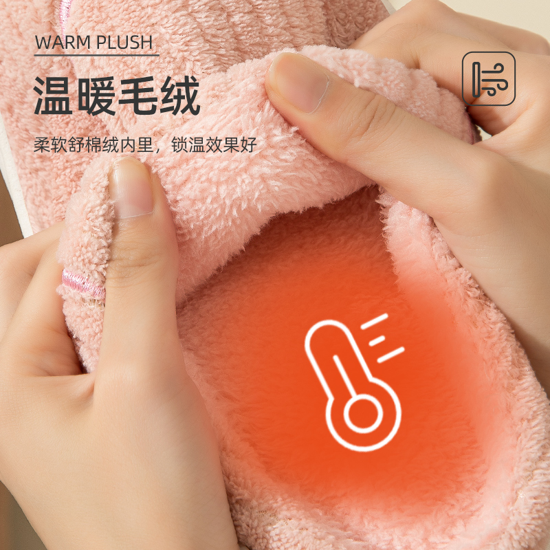 内里填充3cm加厚仿兔毛绒,触感如撸猫般细腻,光脚穿也不刺痒。鞋面采用双层加密珊瑚绒,冷空气无缝可钻,-5℃室内久坐脚底依然温热。实测对比:普通棉拖2小时后脚温下降5℃,本款仅下降1.5℃。