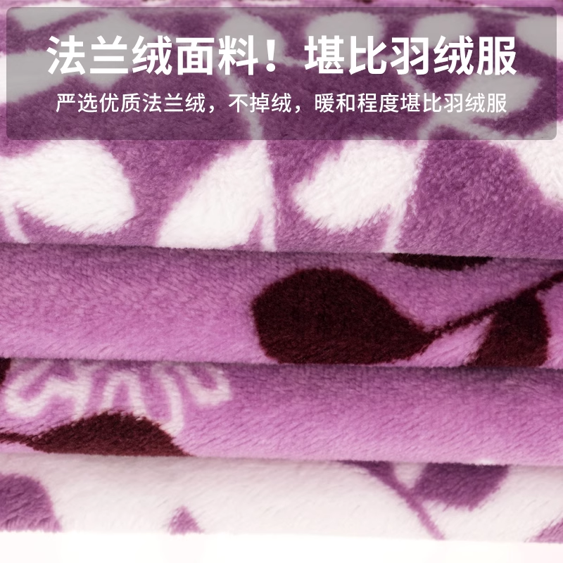 • - 触感柔软亲肤,贴身使用不刺痒,尤其适合皮肤敏感人群。 - 相比普通化纤面料,法兰绒锁温性更强,减少热量流失,体感更温暖。