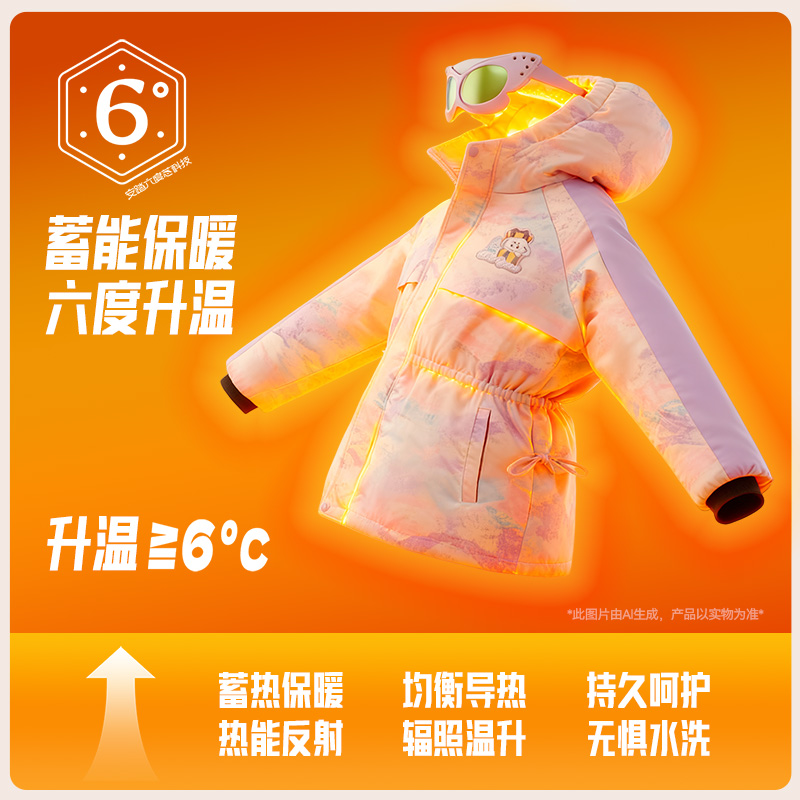 核心卖点:热返科技+六度芯冰甲,让孩子冬日暖而不闷