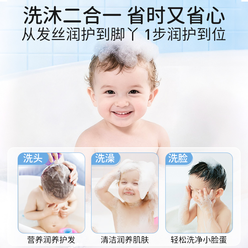 二合一更省心:尤其适合低龄宝宝,减少沐浴露与洗发水的交叉刺激风险。