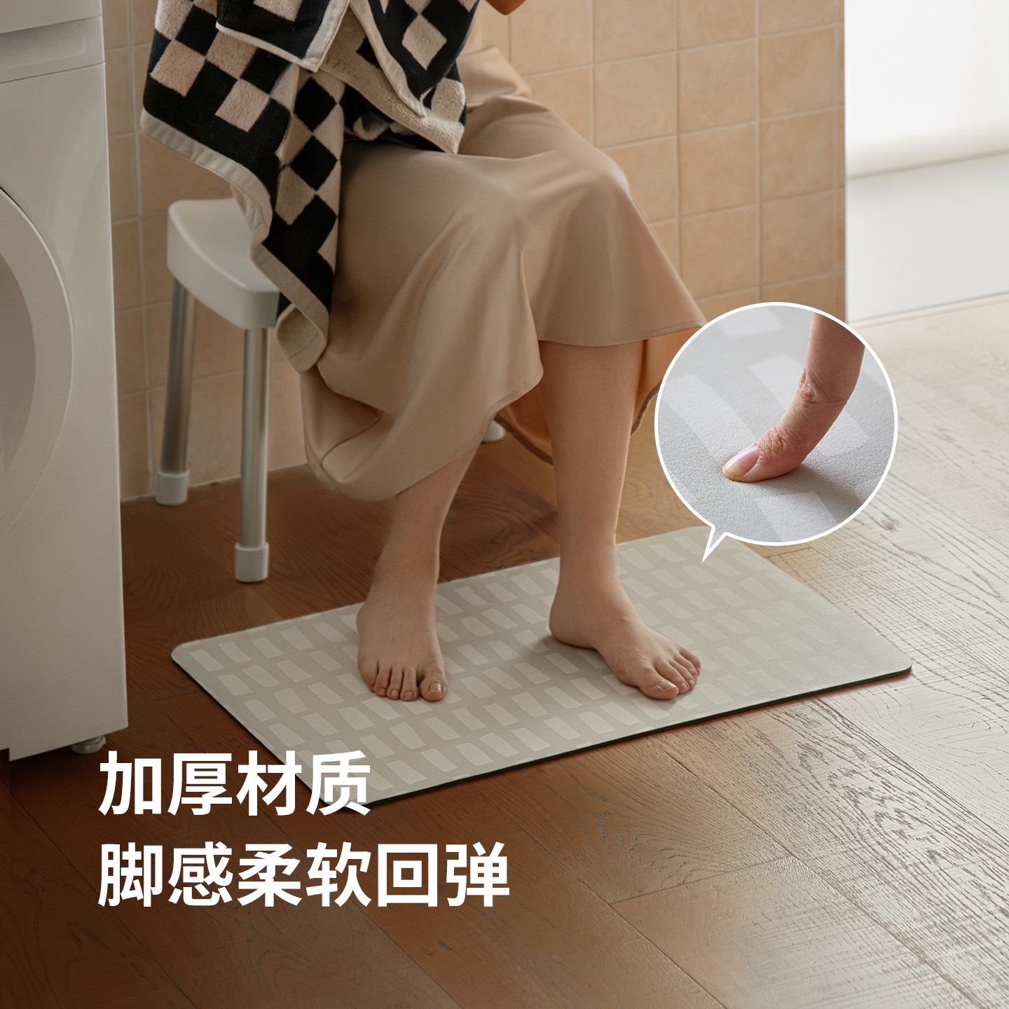 浴室潮湿易滑倒?普通地垫吸水慢、易发霉?霜山浴室地垫专为淋浴房、卫生间设计,采用仿皮革材质,表面疏水抗污,吸水后快速挥发,告别潮湿黏腻感。加厚柔软回弹层,光脚踩上去如云朵般舒适,底部防滑颗粒设计,湿滑地面也能稳稳站住,老人小孩更安心。
