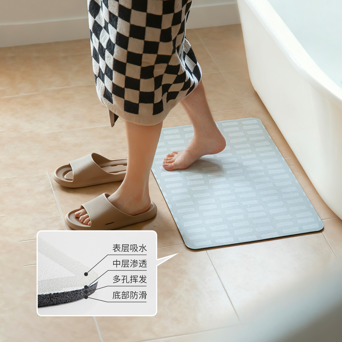 > “家里有老人小孩,浴室安全最重要。这款地垫防滑效果真的不错,洗完澡踩上去稳稳的,而且吸水快,干得也快,不会发霉。” —— 用户@小琳