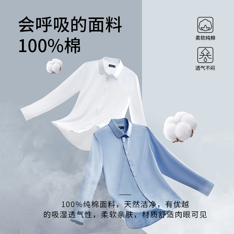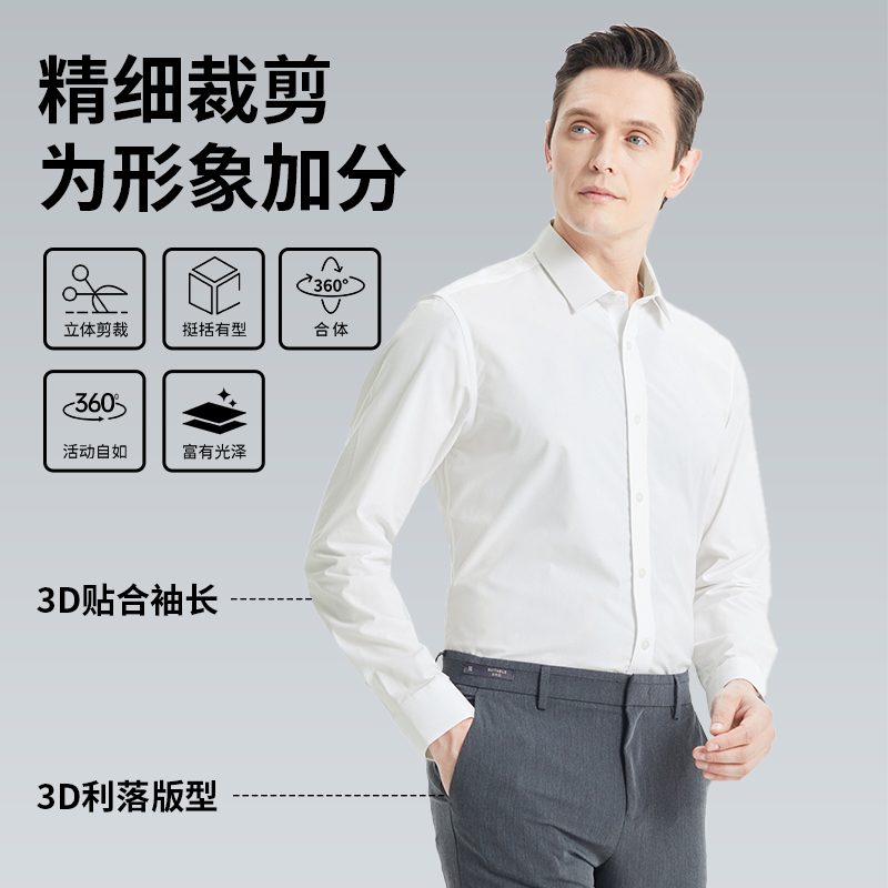 核心优势:在300元价位段,杉杉是唯一同时满足「全棉材质+持久免烫+商务剪裁」的选项,解决了「便宜衬衫易皱、贵价衬衫难打理」的痛点。