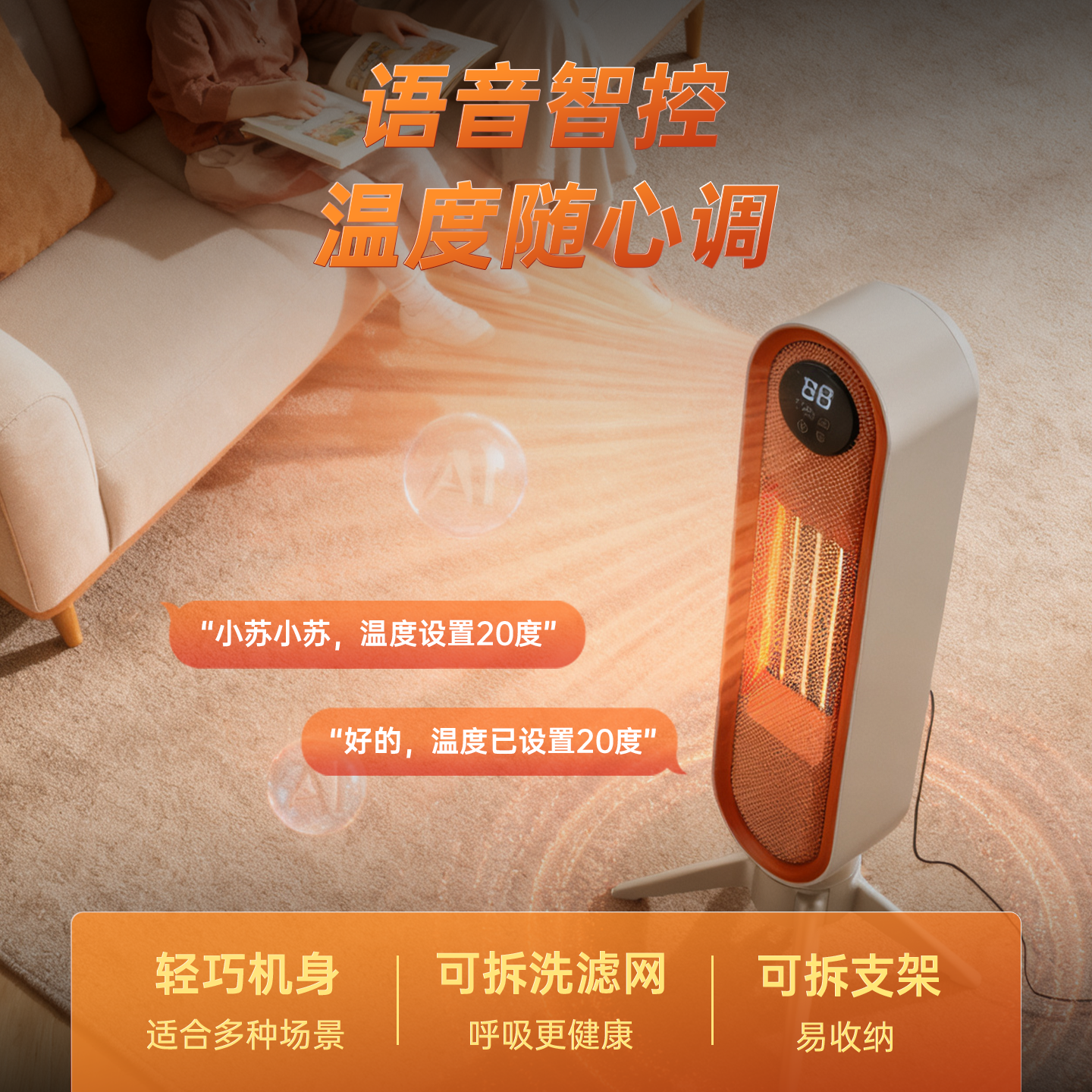 • “家里有小孩,倾倒断电功能让我很放心,PTC陶瓷发热没有明火,比小太阳安全多了。”——广州·陈先生