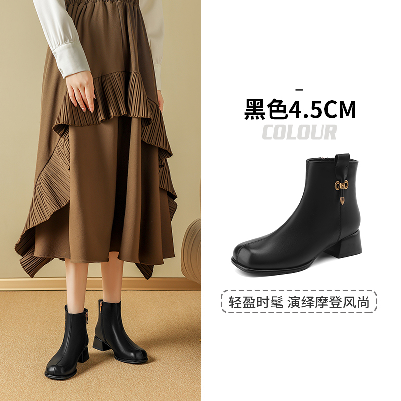 卓诗尼厚底马丁靴采用侧边拉链设计,大大简化了穿脱过程,即便是匆忙的早晨,也能快速完成装扮,轻松出门。同时,粗跟设计不仅增加了鞋子的稳定性,还能在视觉上拉长腿部线条,让你瞬间拥有大长腿的既视感。无论是长时间行走还是站立,都能有效减轻脚部负担,让你享受一整天的舒适与自在。