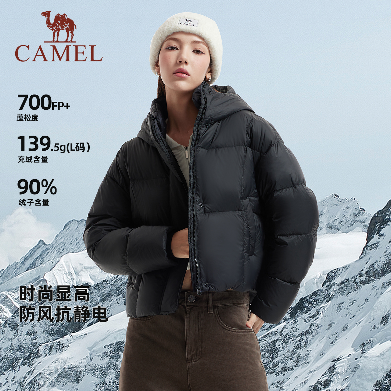 【骆驼】90绒保暖防寒连帽羽绒服 | 2025冬季短款面包服,锁温不跑绒的轻盈之选