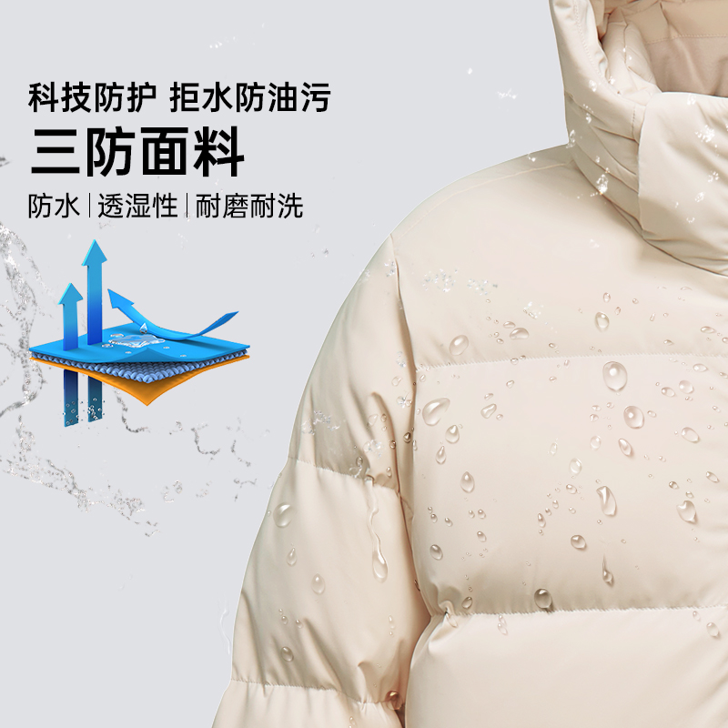 一、核心材质解析:三防黑科技×90%白鸭绒,重新定义冬季保暖