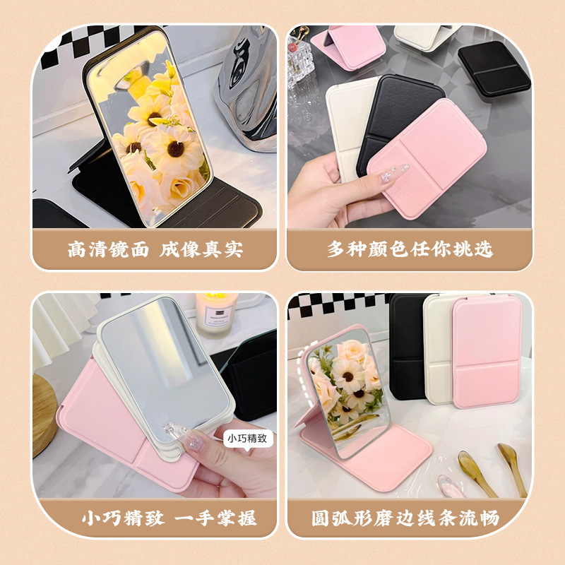 镜面采用高清镀膜玻璃,成像清晰无畸变,拒绝廉价塑料感;镜框选用食品级ABS材质,抗摔耐磨,边缘圆润不割手;折叠支架内置磁吸设计,开合顺滑,使用寿命长达3年+。底部配有防滑硅胶垫,桌面放置稳如泰山,避免手滑摔落的尴尬。