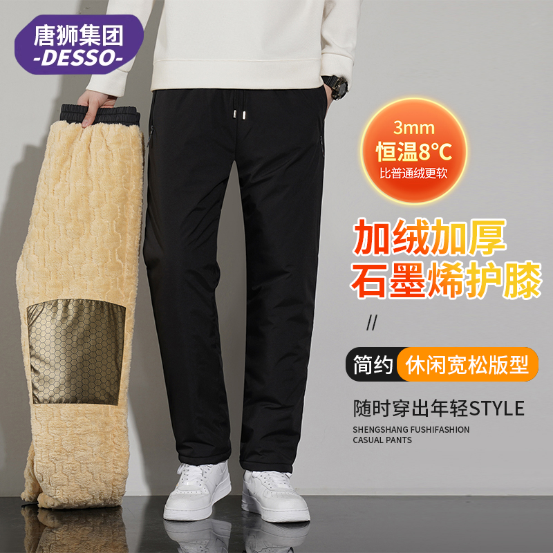唐狮旗下DESSO男士冬季石墨烯加绒加厚防寒裤男款保暖棉长裤