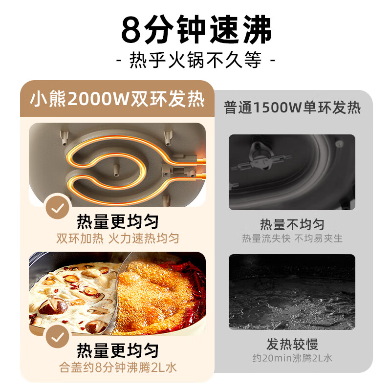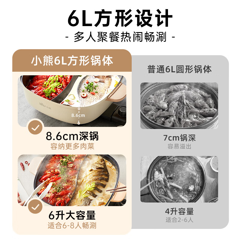 小熊电火锅鸳鸯锅家用大容量多功能一体式火锅专用锅电锅电煮锅