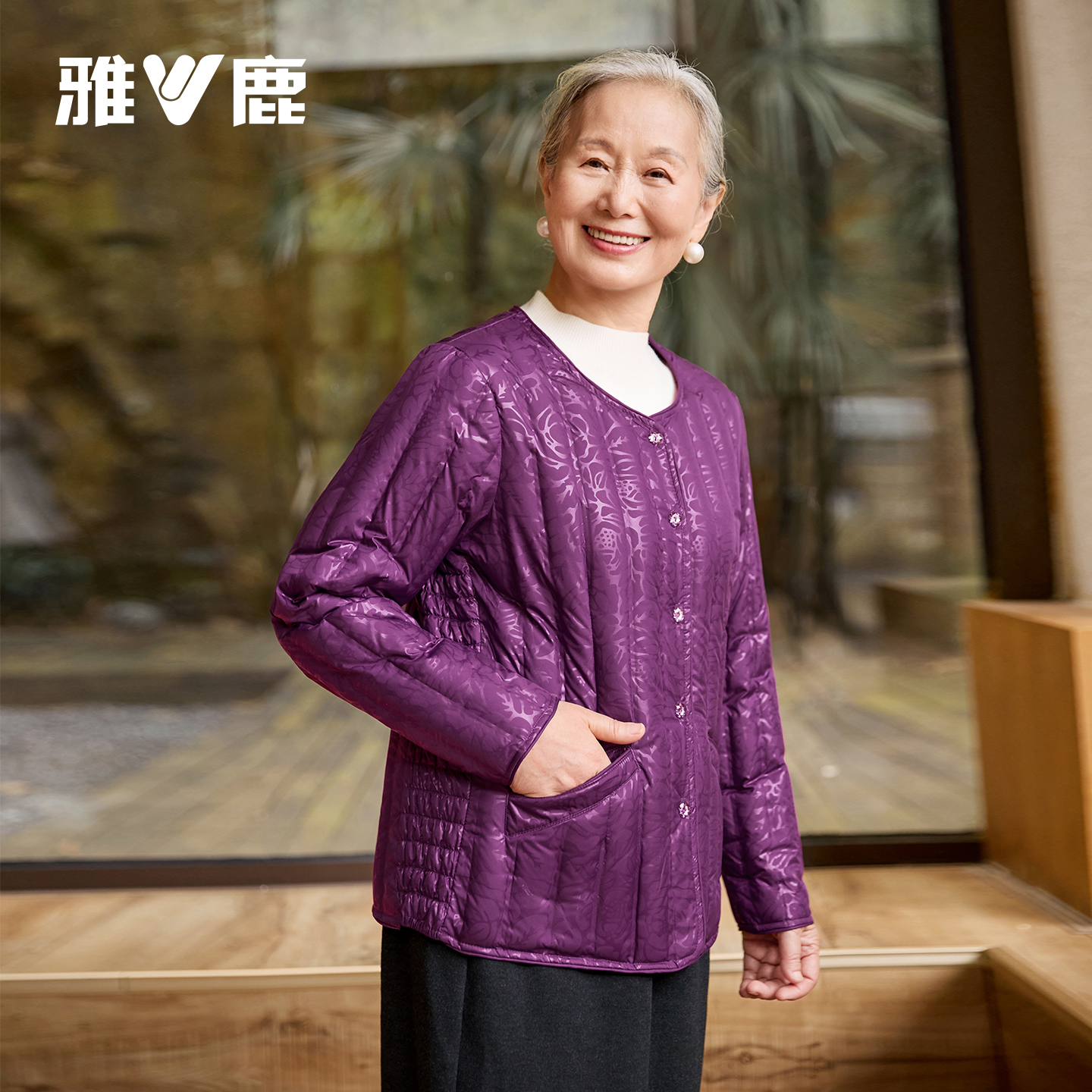 雅鹿奶奶轻薄羽绒服老年人冬装2025新款中老年休闲圆领保暖内胆女