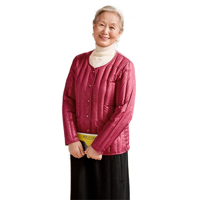 雅鹿妈妈红色轻薄羽绒服立领短款中老年装