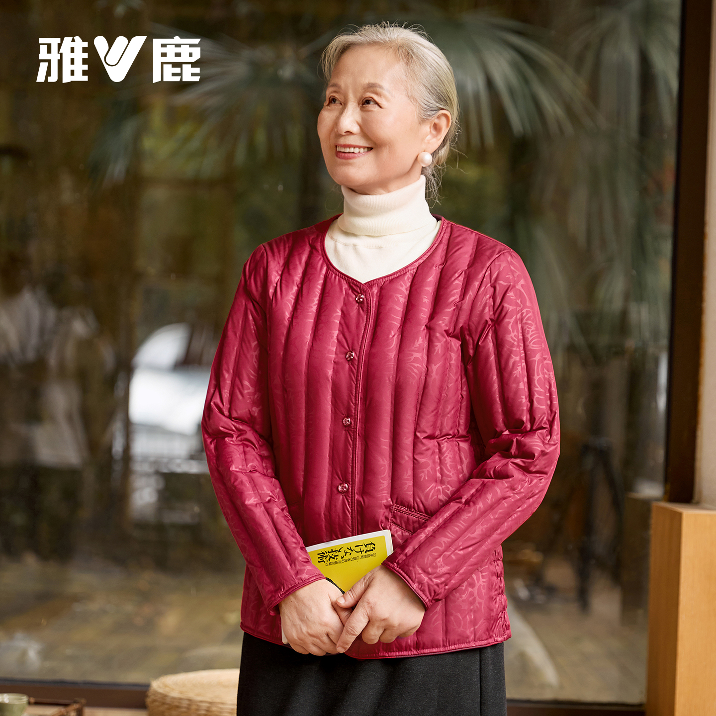 雅鹿奶奶轻薄羽绒服冬装新款休闲圆领保暖