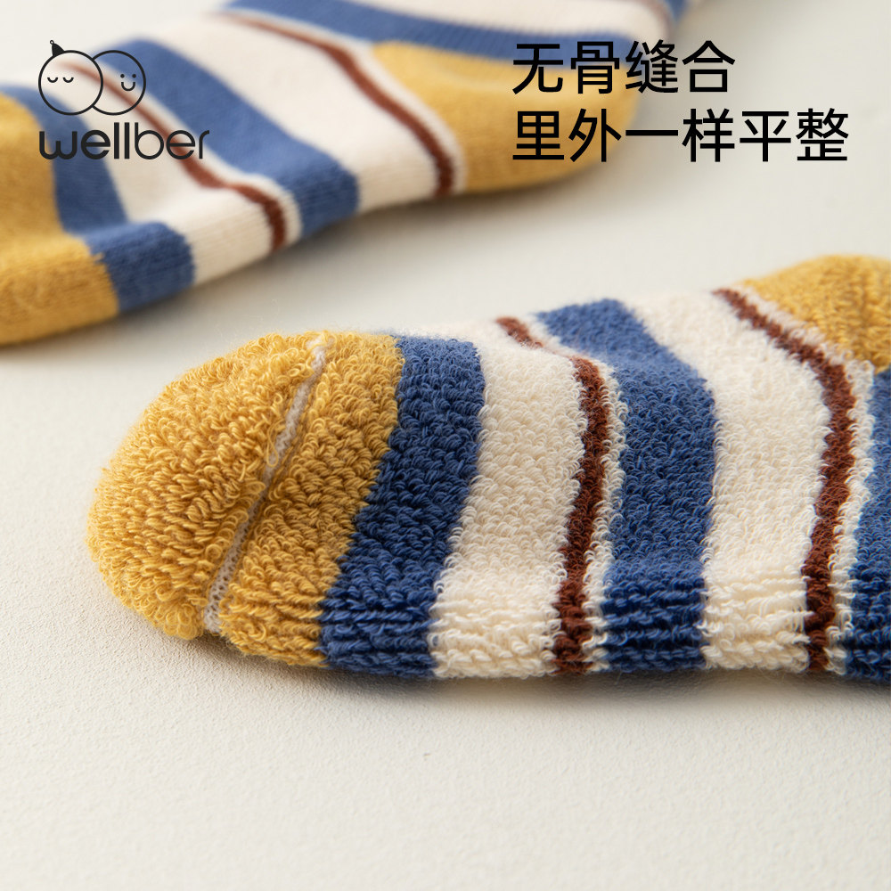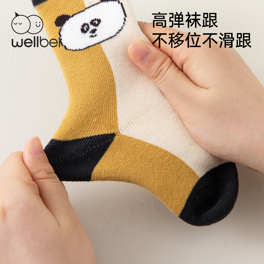 威尔贝鲁儿童袜子采用85%精梳棉+10%聚酯纤维+5%氨纶黄金配比,精梳棉经过特殊梳理工艺去除短纤维,触感更柔软且不易起球。袜口添加5%氨纶形成记忆回弹圈,既能贴合脚踝又不会勒出红印,特别适合3-8岁活泼好动的宝宝。