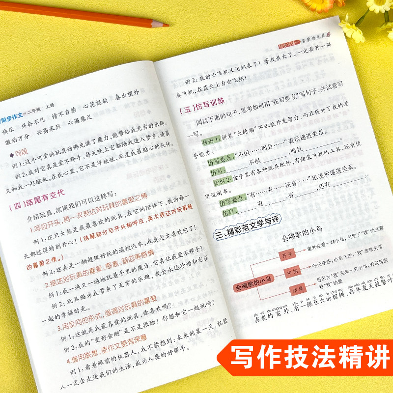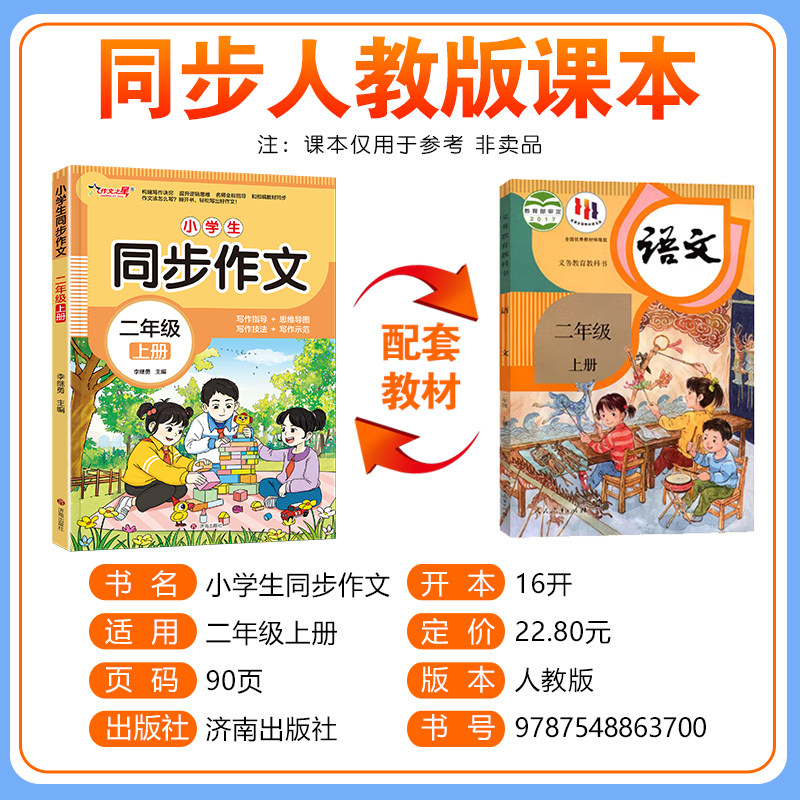 采用环保纸张印刷,字迹清晰不伤眼,封面加厚防磨损,适合小学生日常翻阅。内容紧扣人教版语文教材,按年级分册(二至六年级上下册),每单元配套3-5篇精选范文,涵盖写人、记事、状物、想象等全题材,附名师点评与写作技巧总结,帮助学生快速掌握写作逻辑。