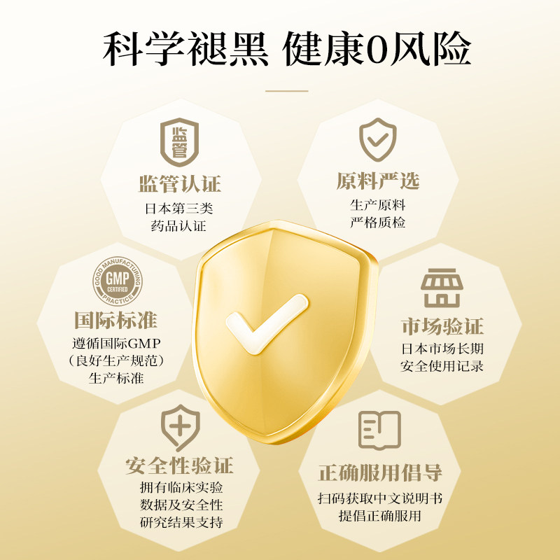 日本盐野义Cinal美白丸由百年药企盐野义制药研发,核心成分希纳露(L-半胱氨酸)是人体天然存在的氨基酸,能精准阻断黑色素生成链,从源头减少色斑、暗沉。搭配高活性维生素C(VC)与谷胱甘肽,形成「抑黑-抗氧化-提亮」三重链路:VC抑制酪氨酸酶活性,谷胱甘肽分解已形成的黑色素,三者协同实现28天科学焕白。