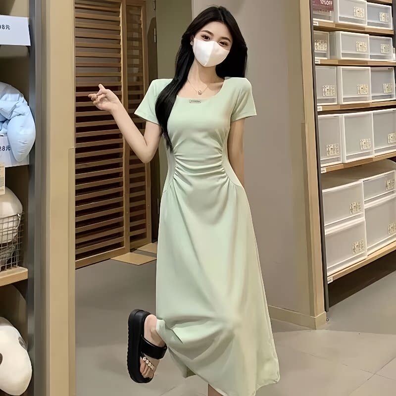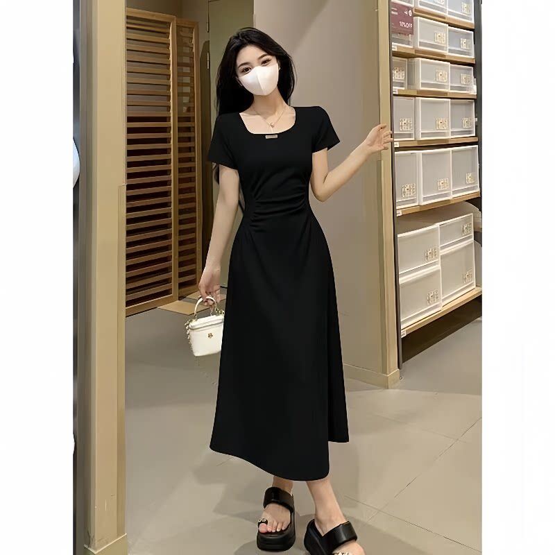 约会聚会:收腰设计凸显腰臀比,搭配珍珠耳钉+锁骨链,轻松营造纯欲氛围感