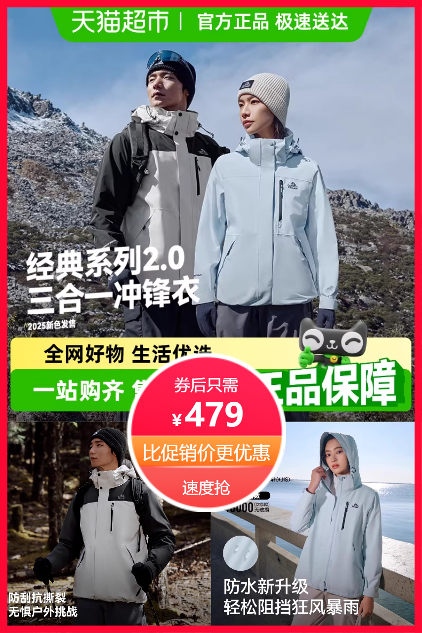 外层采用StormBreath®科技面料,经DWR防泼水处理,实测暴雨级防水(静水压≥10000mmH2O),接缝处全压胶工艺杜绝渗水。内胆为280g蓄热摇粒绒,通过远红外发热技术实现体感升温3-5℃,比普通抓绒保暖性提升40%。三合一结构支持外层单穿(15-25℃)、内胆单穿(10-20℃)、组合穿着(-10-10℃),覆盖全年气候。