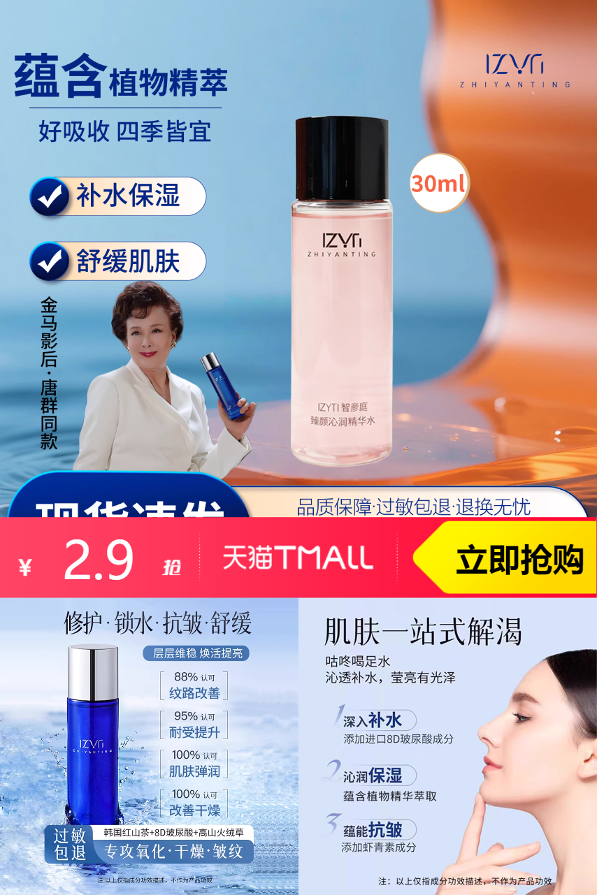 【原价24.9-淘客券22-淘金币0.74=2.16】智彦庭臻颜沁润精华水舒缓保湿抗皱30ml,想要轻松实现保湿、抗皱?快来体验【智彦庭臻颜沁润精华水】的魅力吧!